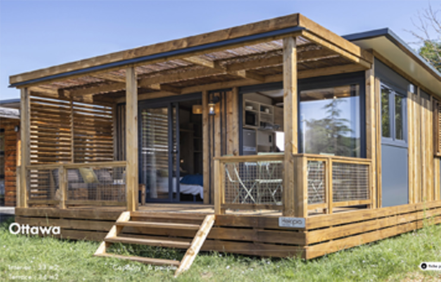 Basisversion des Mobilheim Modernes mobiles Haus für bis zu 5 Personen mit Küche und Außenterrasse